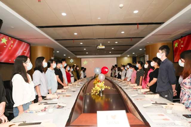 “我和我的祖国,一刻也不能分割,无论我走到哪里,都流出一首赞歌……”活动开始,中装建设集团党委组织党员合唱《歌唱祖国》、《我和我的祖国》等经典红色歌曲。