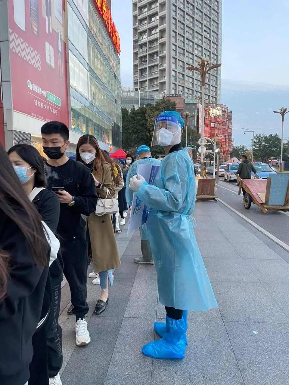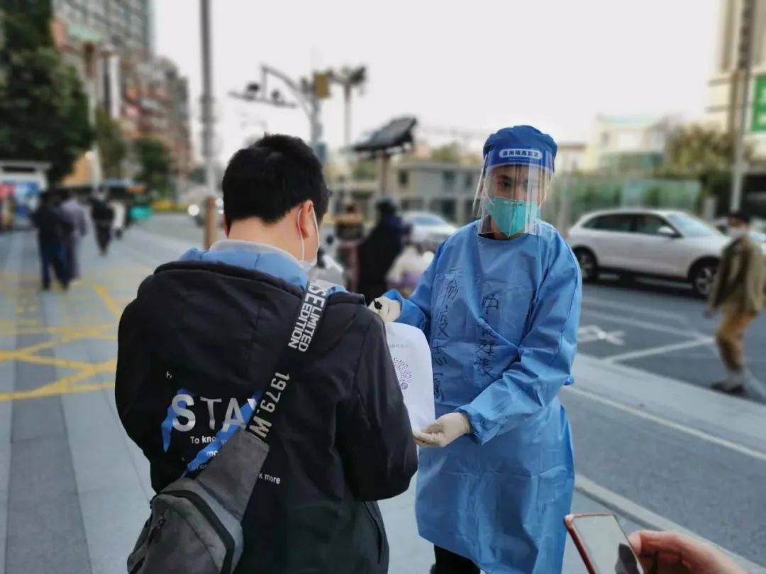 “您好,请间隔一米排队,提前出示核酸检测码,谢谢配合!”核酸采样现场,大量附近居民在排队等待核酸采样,中装志愿者们耐心为居民们答疑解惑,帮助老人登记身份信息,维持现场秩序,确保核酸检测高效、有序开展。