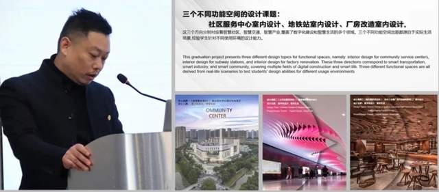 出题单位深圳市中装建设集团股份有限公司代表曹端顺解读本次毕业设计课题 并解答学生提问